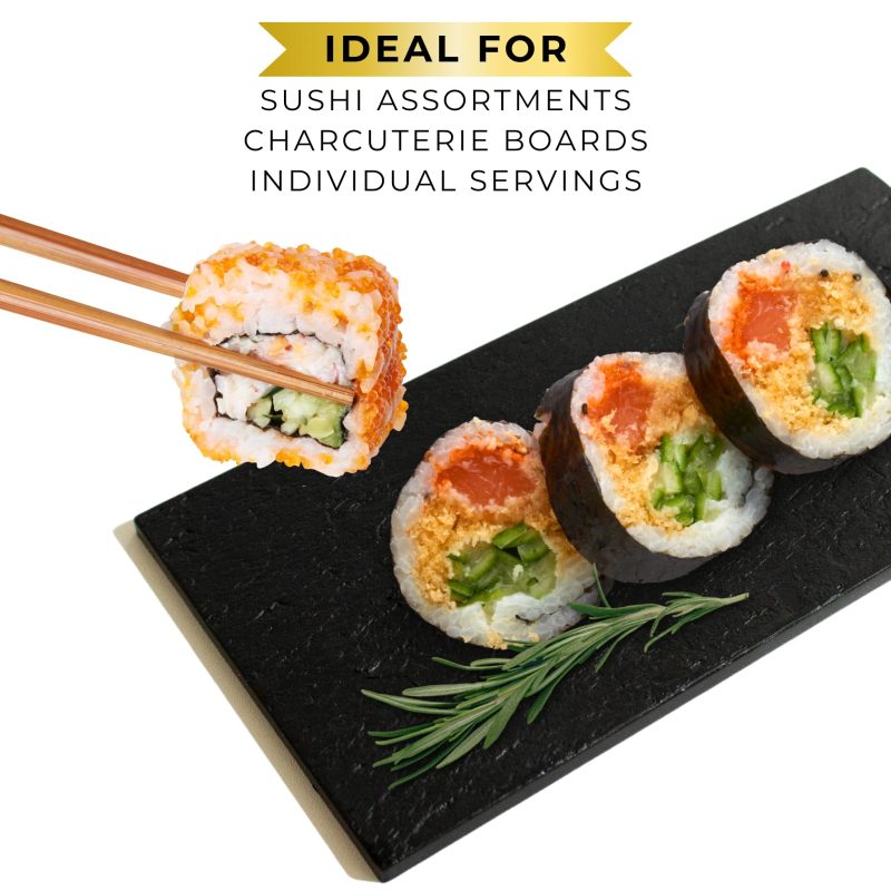 Durable Food Tray: Crafted from sturdy plastic, this food tray doubles as a durable serving dish. Ideal for appetizers, like a mini quiche, or sushi plate, these hard plastic plates are a reliable option for hosting events with ease and style.