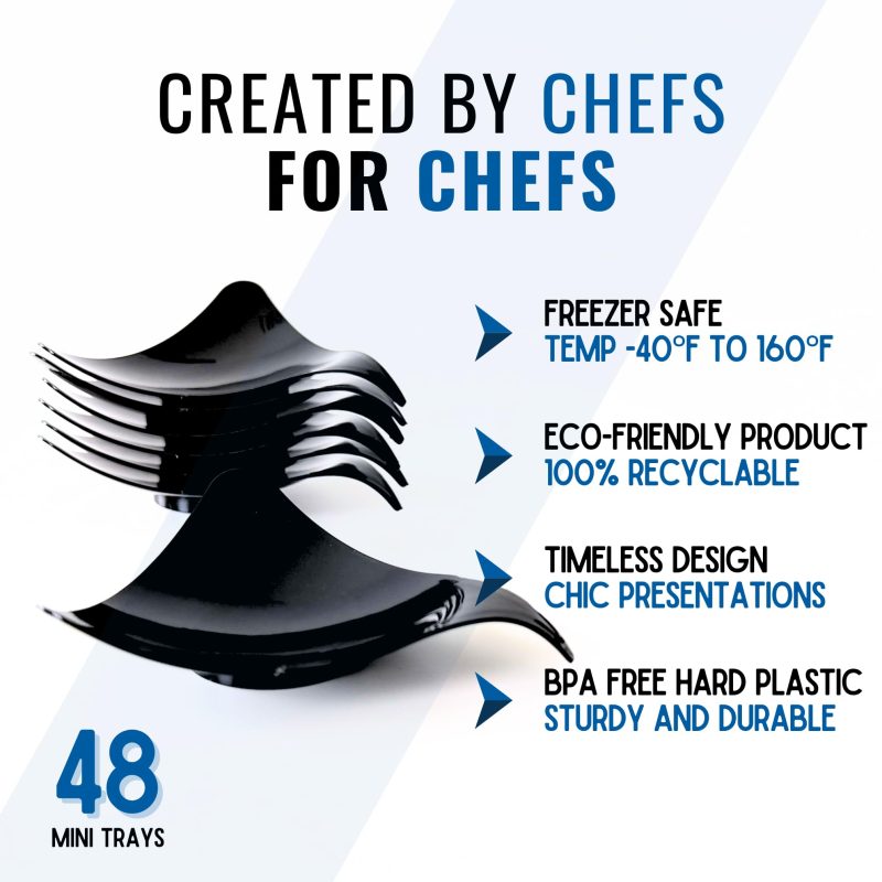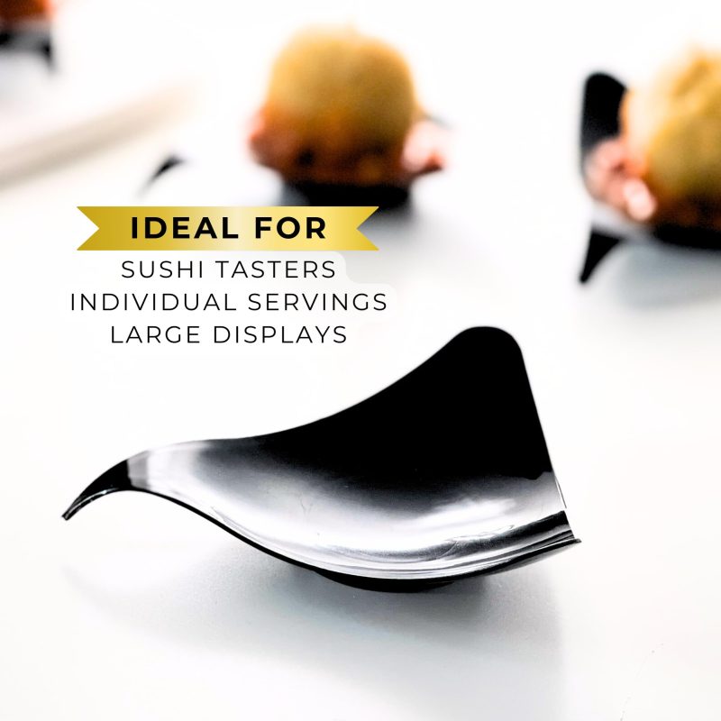 Versatile Catering Supplies: Use these mini plates for appetizers and desserts as part of your catering supplies buffet display. These black party plates are great for serving mini tasting dishes, salsa or as a unique appetizer serving tray.