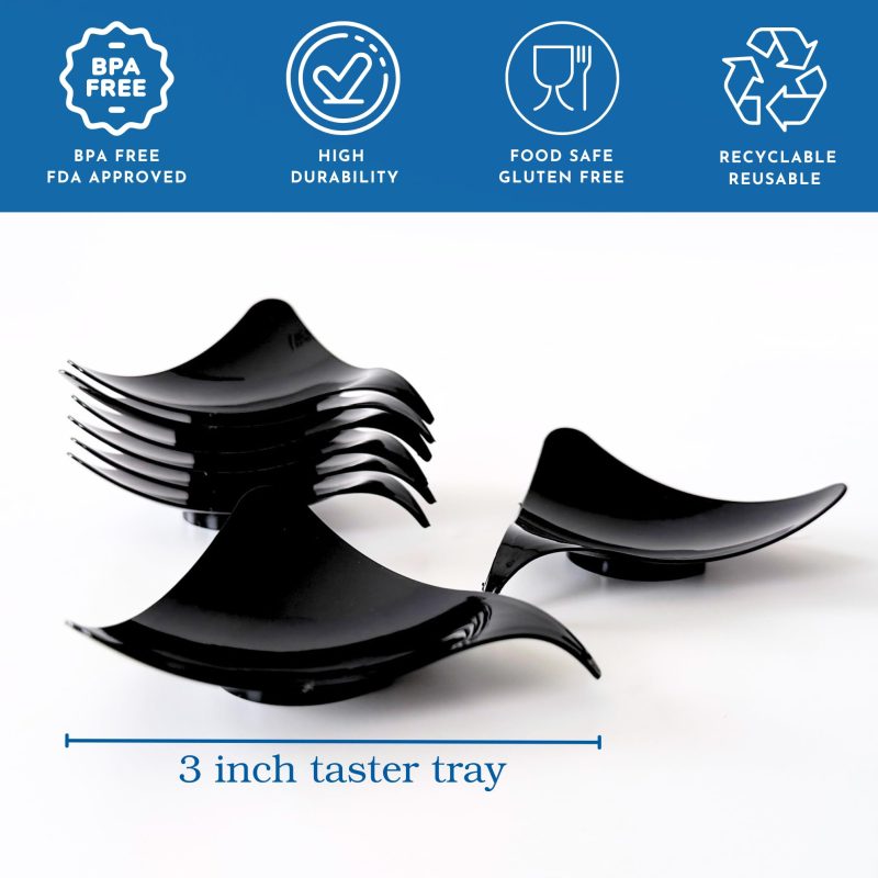 Stylish and Functional: Impress your guests with these black plates disposable that double as tasting party dishes. Their sleek black design makes them great mini plates for desserts and appetizers at weddings or any upscale event.