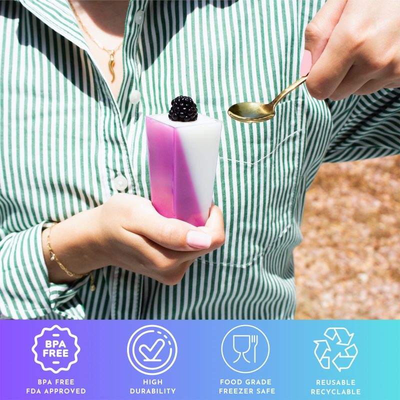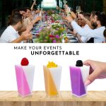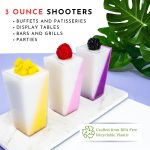 Versatile Dessert Cups: Our square cake shooters clear plastic dessert cups are perfect for showcasing your favorite treats. These 3oz plastic cups are great as dessert shooter cups, mini shot glasses, mini ice cream containers and more. Our clear plastic cups are an ideal choice for your next party or event.