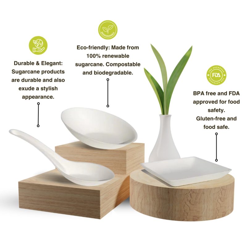 Eco Friendly Material: Made from sugarcane, a renewable resource, these plates are a great alternative to plastic plates and trays. They are compostable, making them a guilt-free choice for environmentally conscious users.