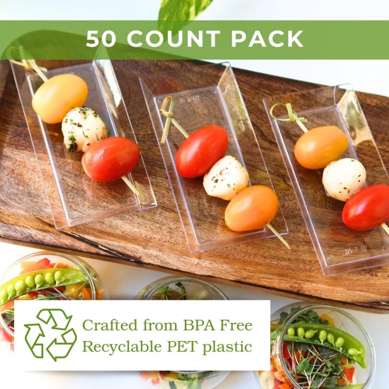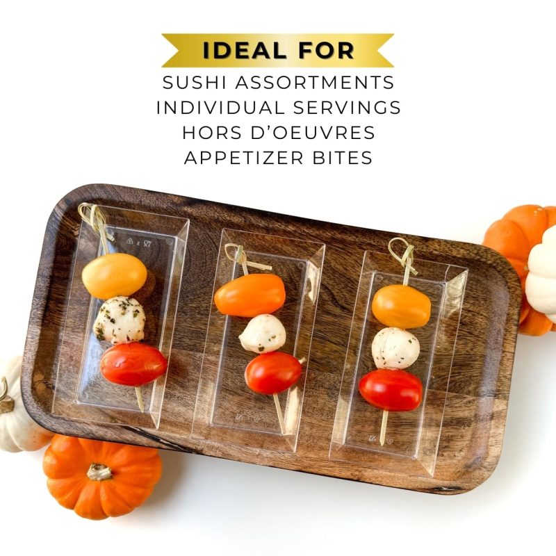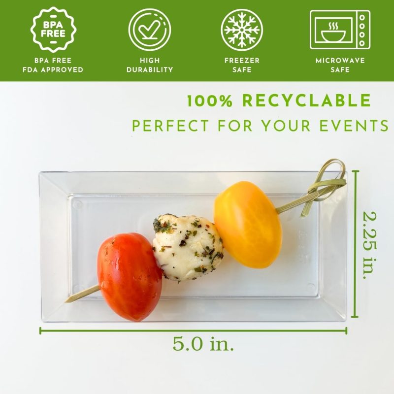 Perfect Size for Elegance: These 5″ clear rectangle plastic plates are ideal for serving up mini desserts and appetizers. They add a touch of elegance to any event, perfect for caterers looking to impress with party plates.