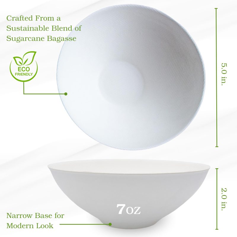 50ct Sugarcane 7oz Small Modern White Bowl Eco Friendly Perfect Small Disposable Plates & Soup Bowls for Caterers, Wedding Planners, Parties CMJJ CMJJ Gourmet Inc.
