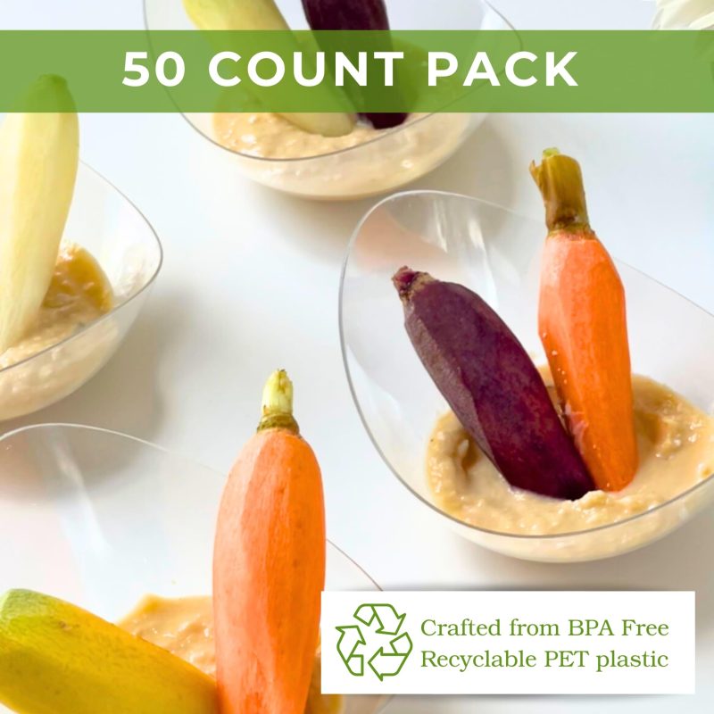Complete Catering Solution: This 50ct set of mini plastic cups offers a complete solution for your catering needs. Perfect as mini appetizer plates, mini dessert containers, or small cups for dessert, they are essential for any event.