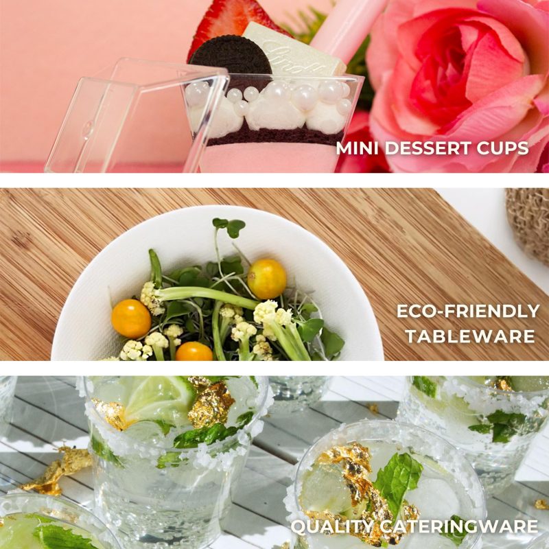 Elegant Dessert Cups: Our mini disposable dessert cups offer the perfect blend of elegance and functionality for any event. These clear plastic cups add a sophisticated touch to your dessert table display set, ideal for serving mousse or pudding.