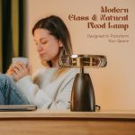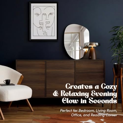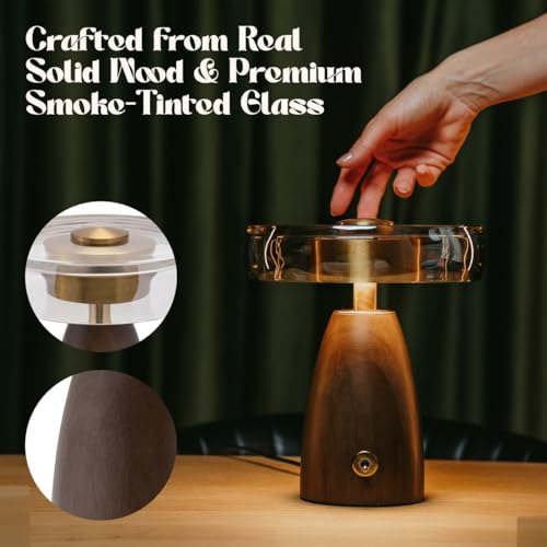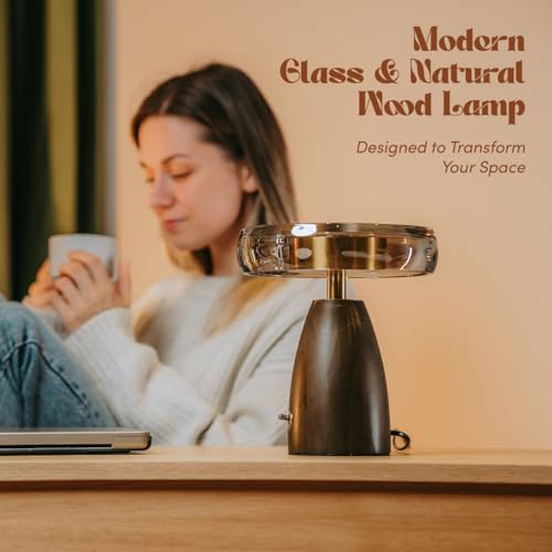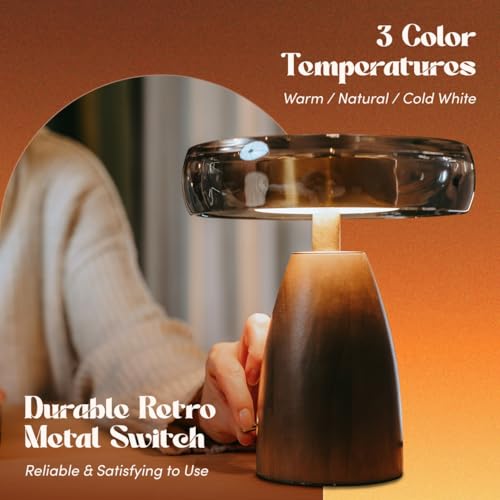 Aesthetic Table Lamp for Living Room, Bedroom, Bedside, Nightstand Lamp with Wood Base, Stained Glass Shade, 3 Color Temperature, Vintage Retro Mushroom Mid Century Modern Lamp, Desk Decor SEHNLICH®