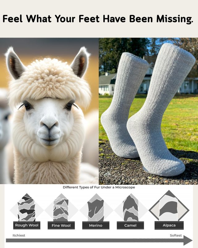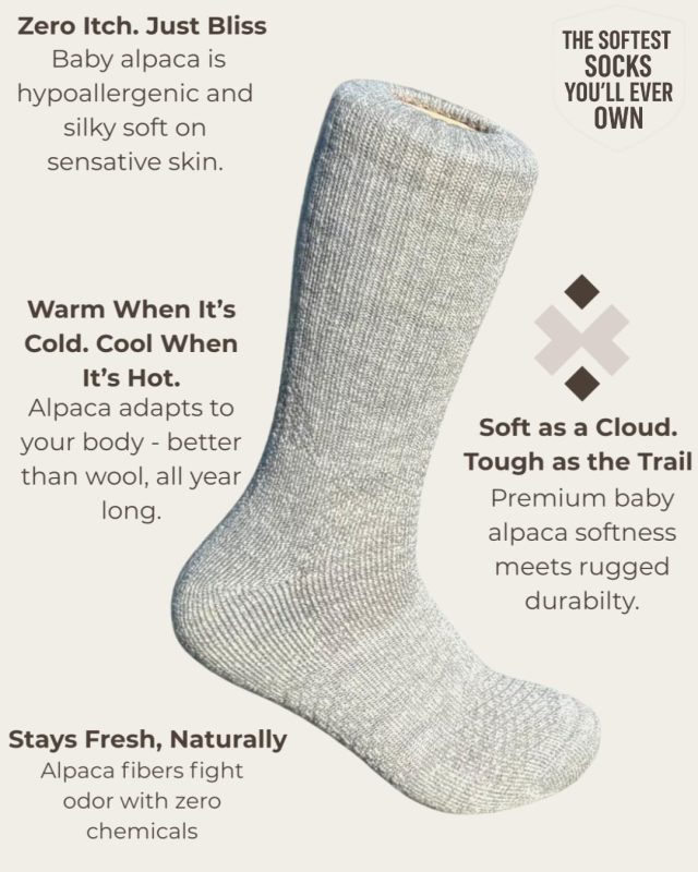 Luxurious Baby Alpaca Softness: Experience unparalleled comfort with baby alpaca fibers, offering an exceptionally soft and warm feel, making each step of your hike or outdoor adventure a pleasure.