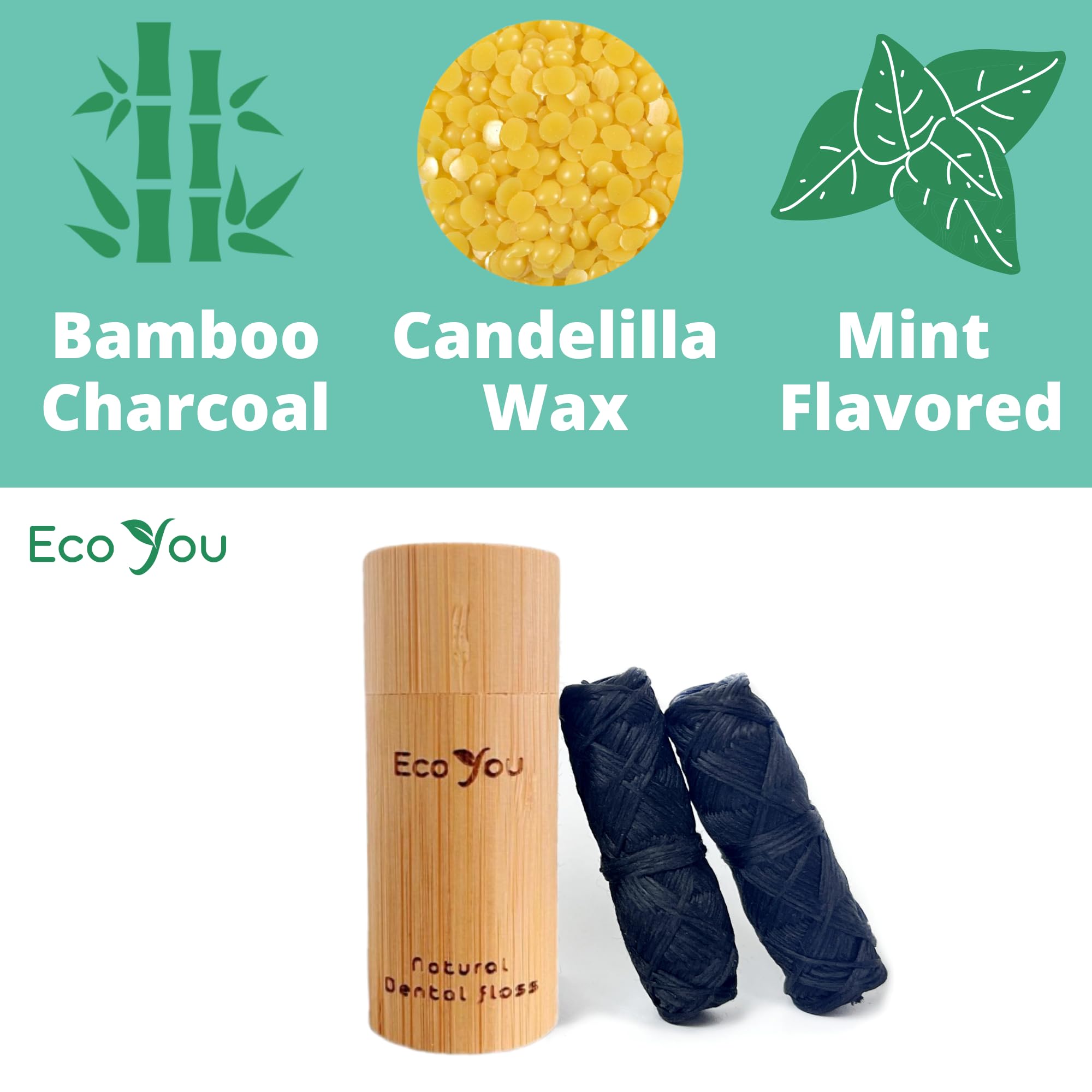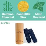 Included – 2 activated charcoal dental floss spools (30m/ 33yrd/100ft each) plus reusable container made from Bamboo.