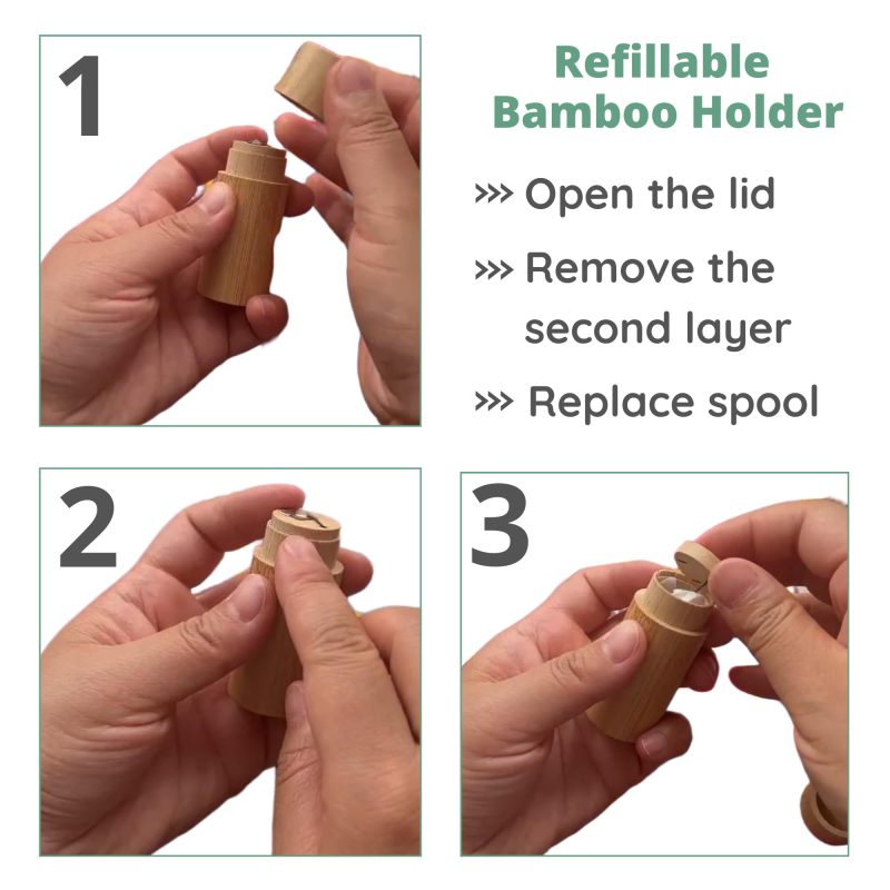 COMPATIBLE BAMBOO FLOSS REFILL – This eco floss refill is compatible with all similar bamboo charcoal floss and silk dental floss containers. It serves as an excellent replacement for traditional nylon floss, offering the same high quality without compromising the environment. BUY THEM NOW!”