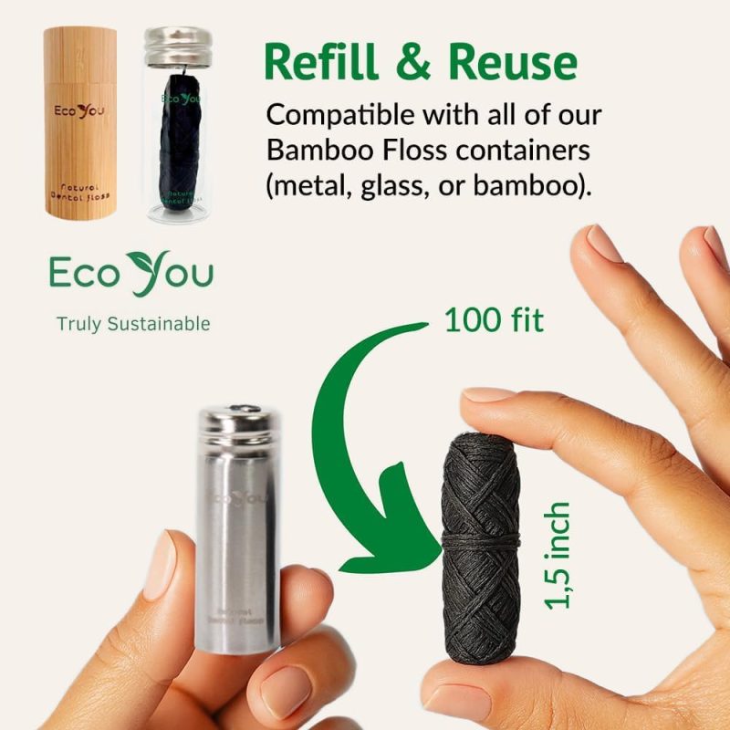 COMPATIBLE DENTAL FLOSS REFILL – This eco dental floss is compatible with any of the similar refillable bamboo charcoal dental floss or silk floss refills.