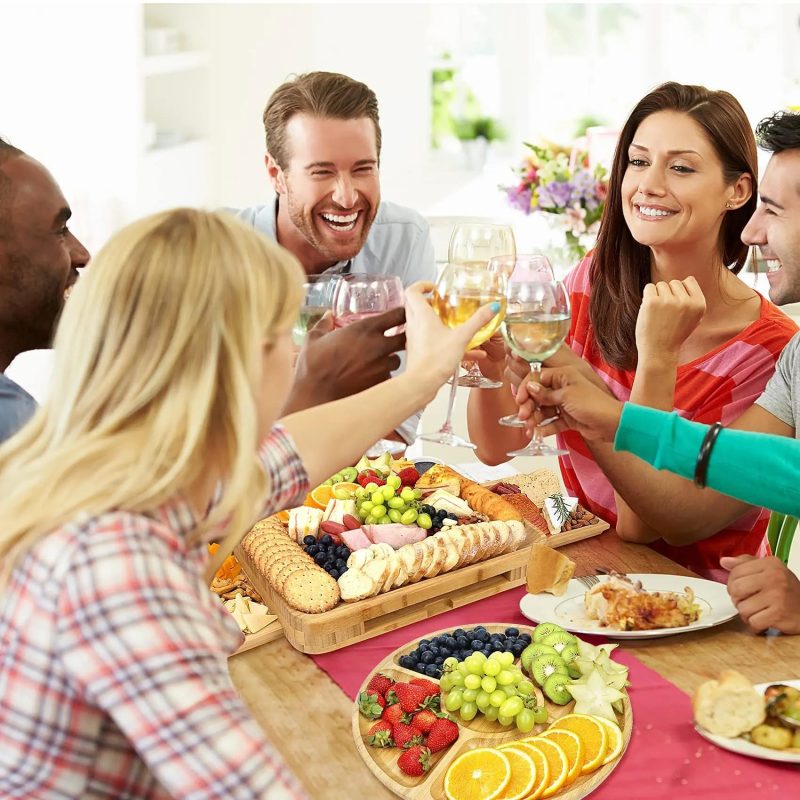 DURABLE & SAFE: The non-porous surface of this wooden cutting board is resistant to stains, odors, and cracks, ensuring durability. As a natural product, these charcuterie trays ensure food safety while elevating your serving experience.