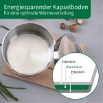 High-quality material: the cooking pot is made of robust stainless steel and has a 45 mm thick aluminium core for optimal heat distribution