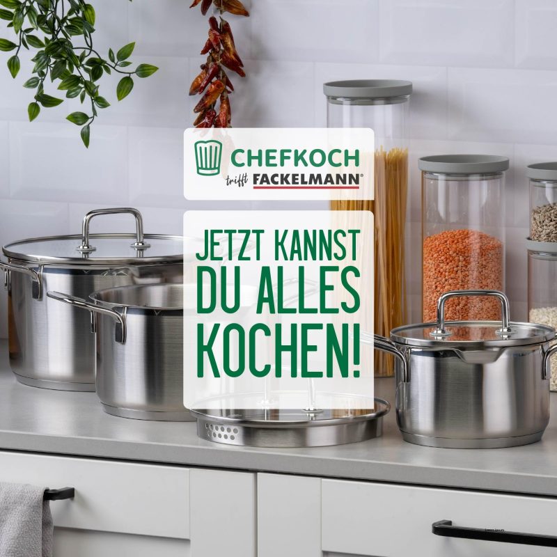 Chefkoch trifft Fackelmann Cooking Pot with Glass Lid Diameter 24 cm – Made of Premium Stainless Steel with Aluminium Core, for All Hobs Including Induction FACKELMANN