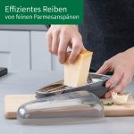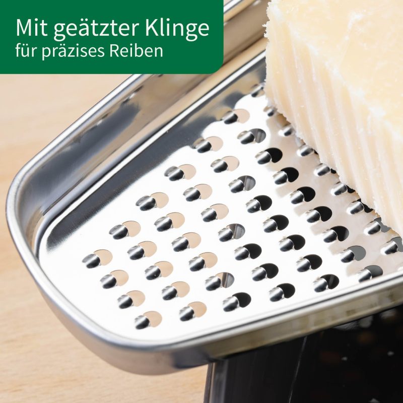 Durable stainless steel blade – The high-quality blade made of 18/0 stainless steel guarantees a long service life and extraordinary sharpness for the finest grating of Parmesan