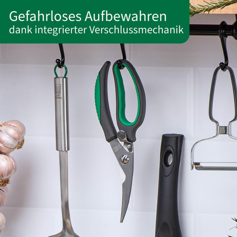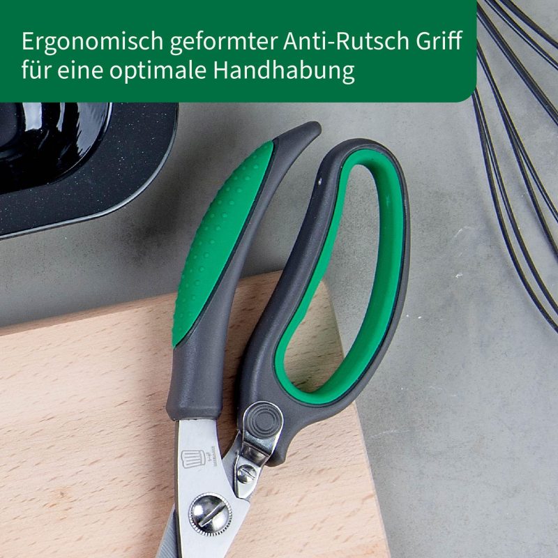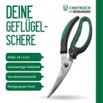 Chefkoch trifft Fackelmann Poultry Scissors Stainless Steel – 23.5 x 7.5 x 2.5 cm – Ergonomic Non-Slip Handle in Grey/Green – With Locking Mechanism for Safe Storage FACKELMANN