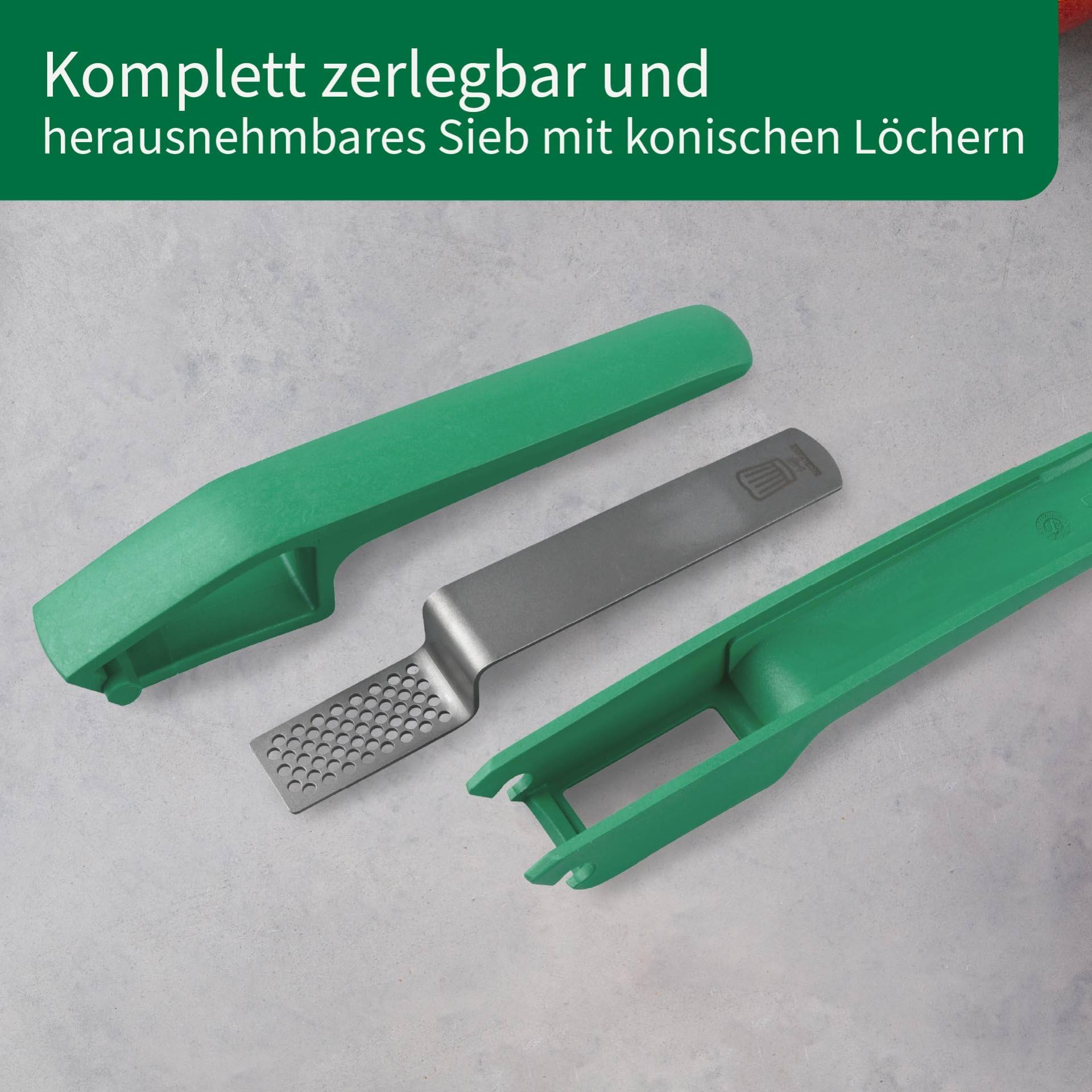 Easy to clean – Thanks to the removable sieve and fully dismountable construction, the garlic press can be easily cleaned under running water or conveniently in the dishwasher