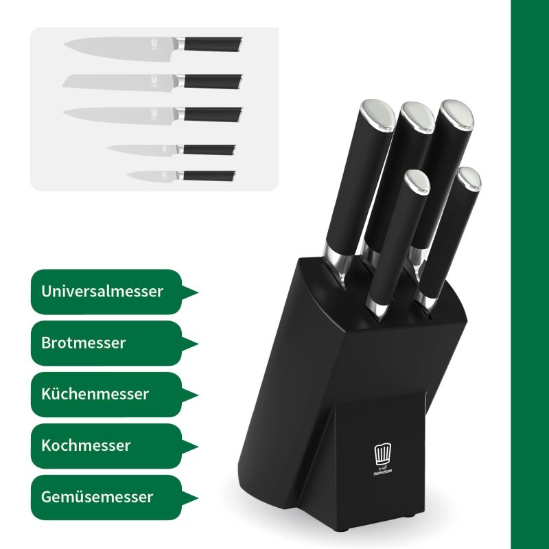 Elegant design – The knife block is characterised by its modern, black design, which is a real eye-catcher in any kitchen and is also ideal as a gift