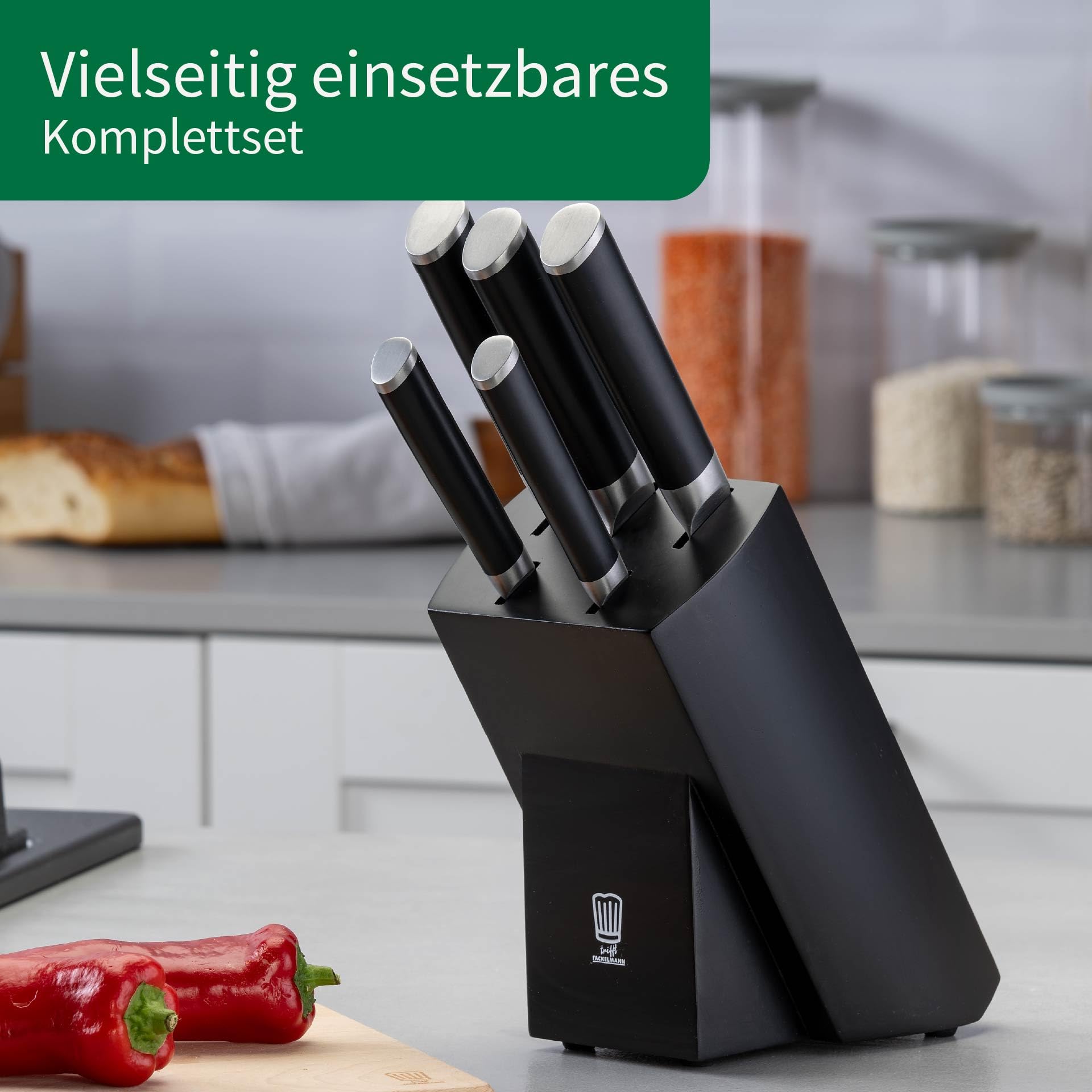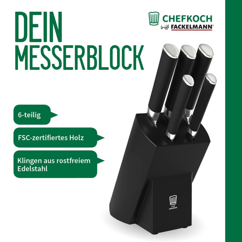 High-quality materials – The knife block from Chefkoch trifft Fackelmann is made from FSC-certified wood and offers robust, rust-proof knives with stainless steel blades for long-lasting sharpness