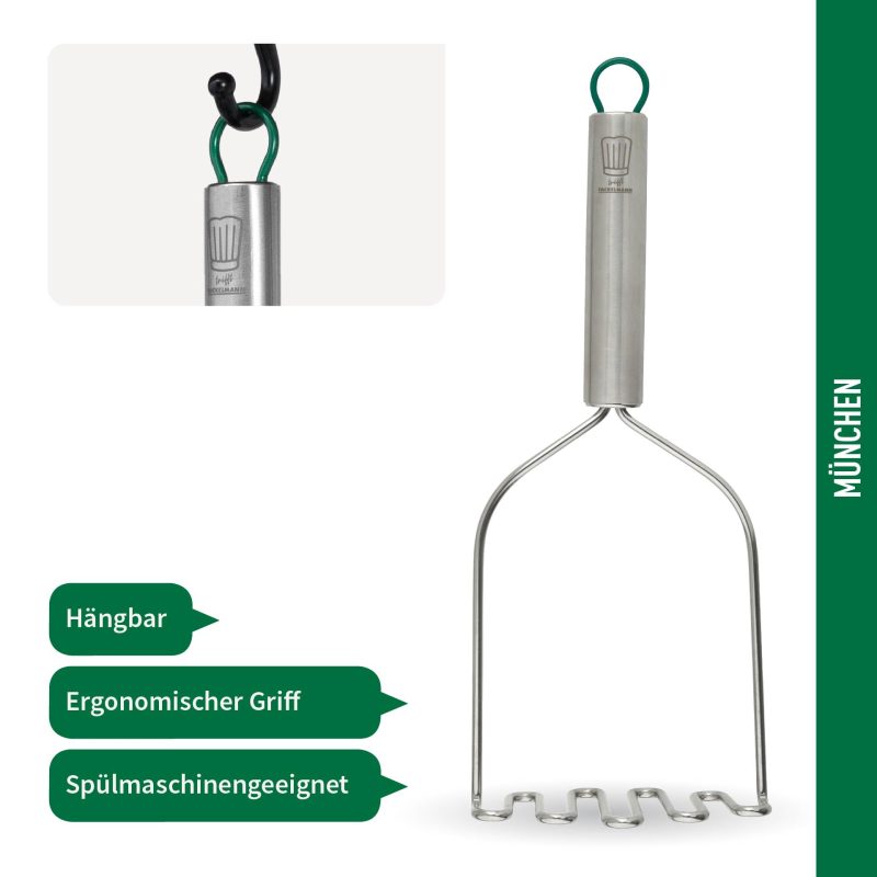 Chefkoch trifft Fackelmann – Premium Potato Masher Made of High-Quality Stainless Steel, Ergonomic Handle, Heat Resistant up to 230 °C, Dishwasher Safe FACKELMANN
