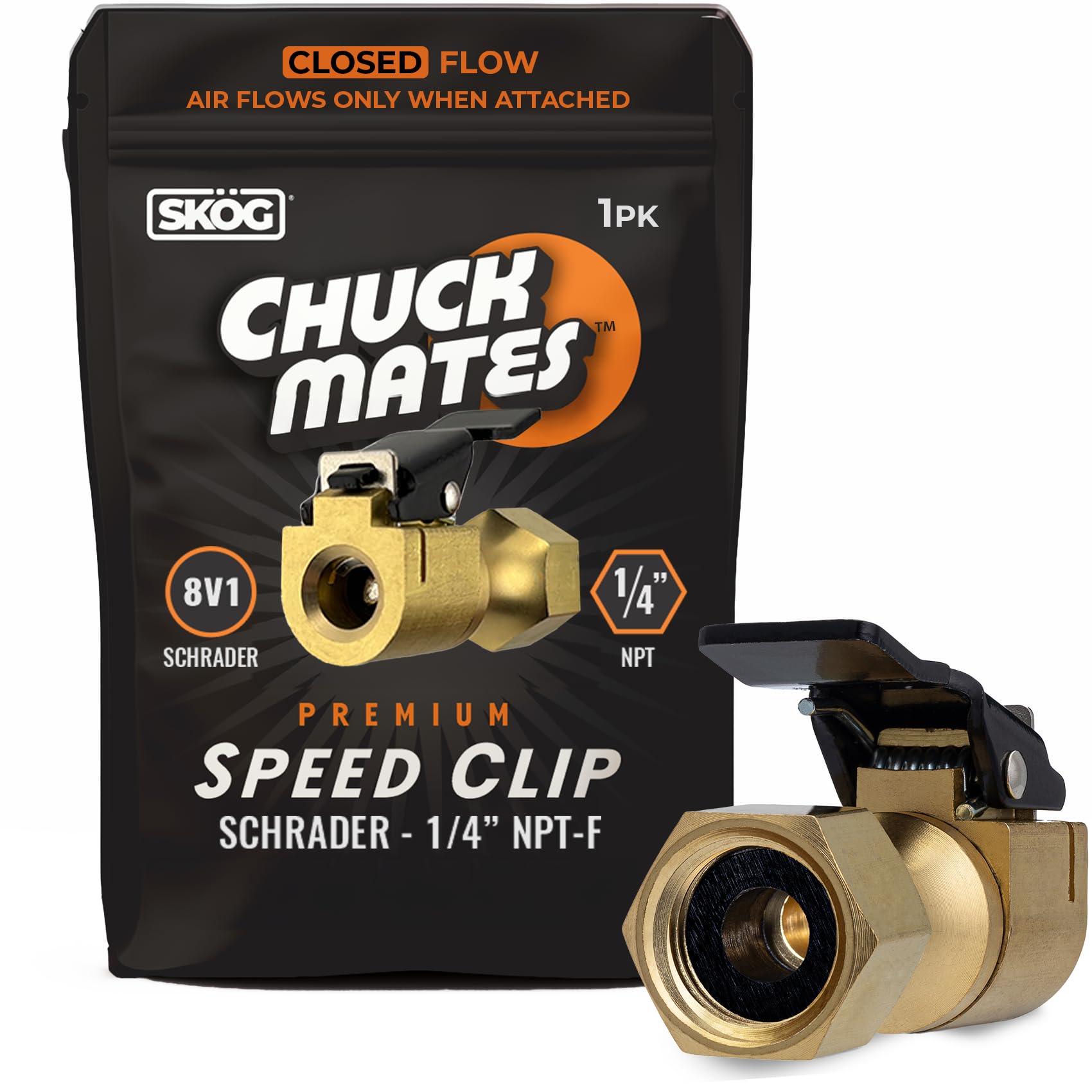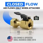 Easy Quick-Connect Design: Effortlessly connects to standard 1/4″ NPT-M air supply hoses for use on all standard Schrader-type tire valves (8V1) seen on virtually all automotive tires.