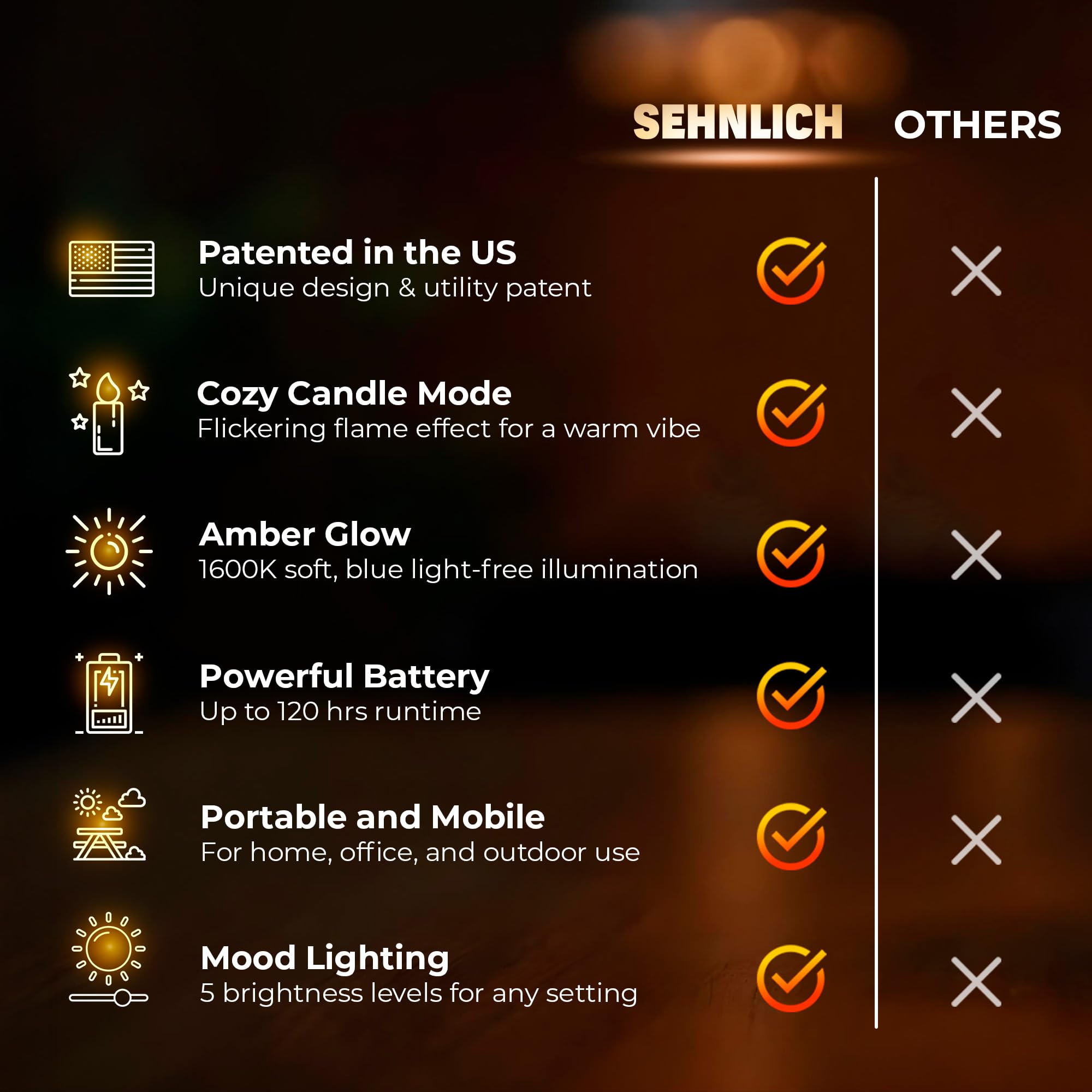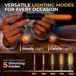 Bedside Lamps: Emitting a warm amber glow and a realistic flame-like flicker, this electric reading candle offers a cozy, flameless candlelight experience. With a comfortable 1600K color temperature and no blue light or flickering, it’s the ideal bedside night light candle. Select from five adjustable brightness levels to perfectly match your nighttime ambiance.