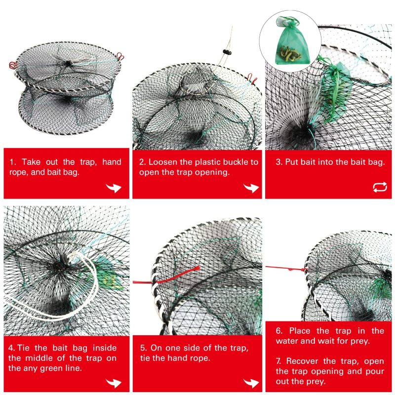 Netting: The fishing trap is made of multiple strands of polyethylene woven material, which has better durability and improves the service life of the trap.