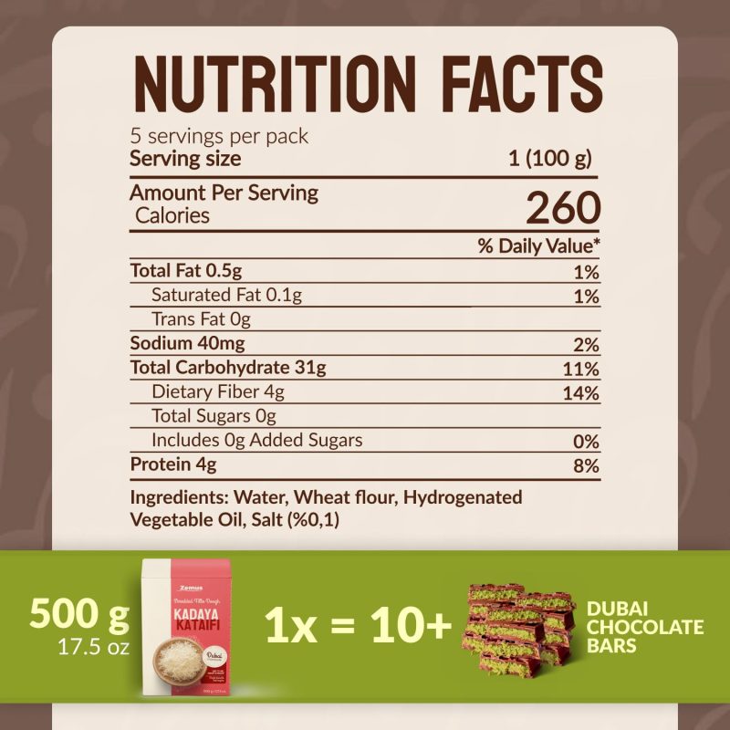 Pre-Shredded for Convenience: Our kataifi shredded pastry comes ready to use, saving you time in the kitchen. This pre-shredded dough ensures consistent results and allows for quick preparation of desserts like kunafa chocolate bar or Dubai chocolate pistachio bars. Whether you’re making an intricate dessert or a simple sweet treat, this dough provides professional-quality results with ease.