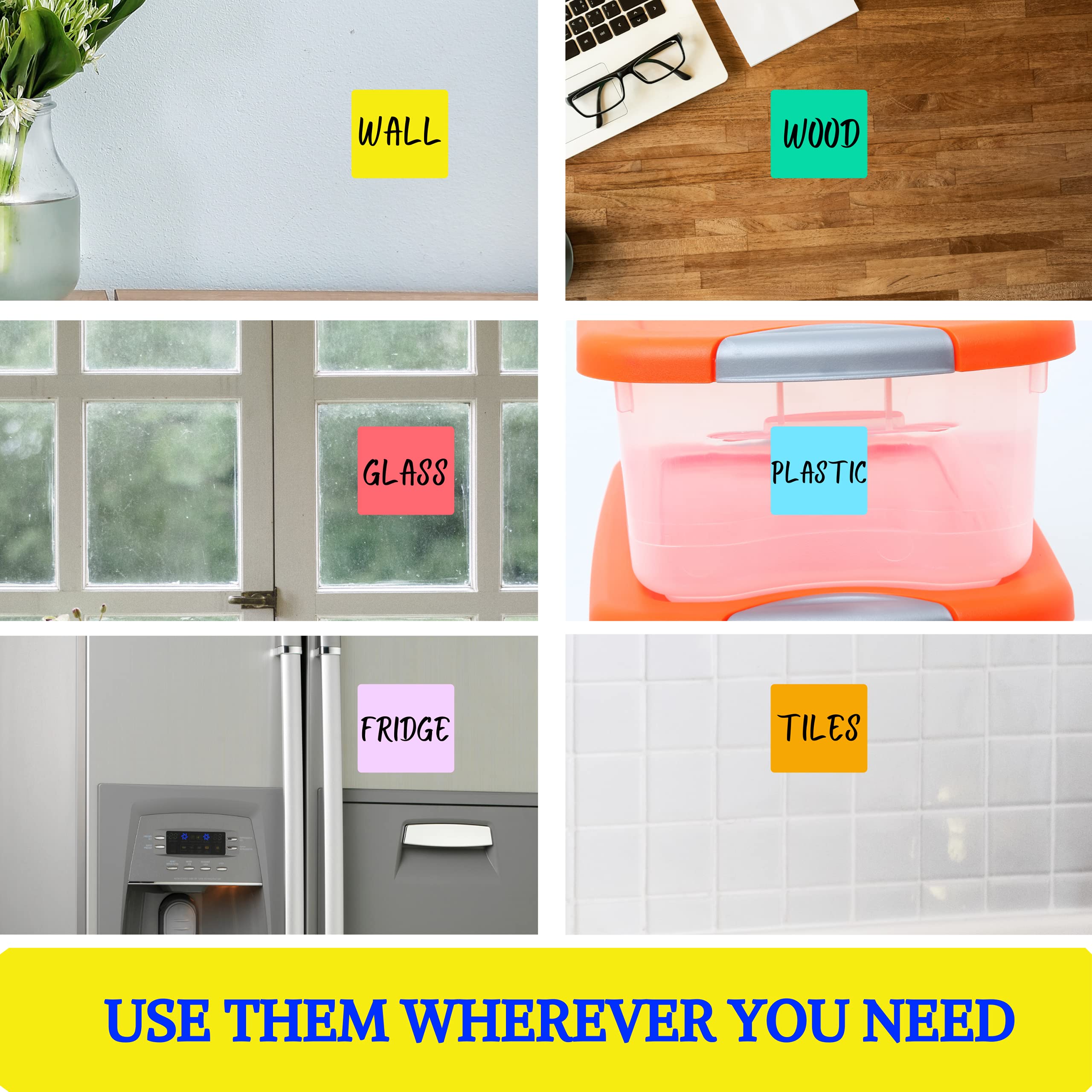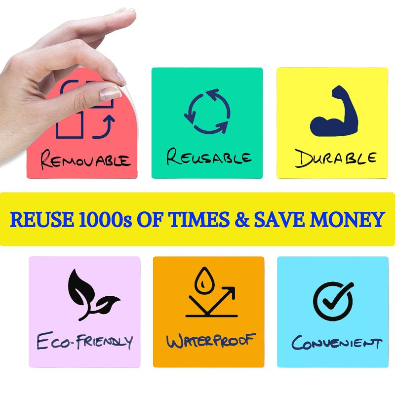 Stay on Track Anywhere: Stick these bold reusable sticky notes on your fridge, mirror, or desk. Jot tasks, schedules, or goals your team or family can see at a glance. Bright, clean, reusable—ditch paper and stay sharp, every day.