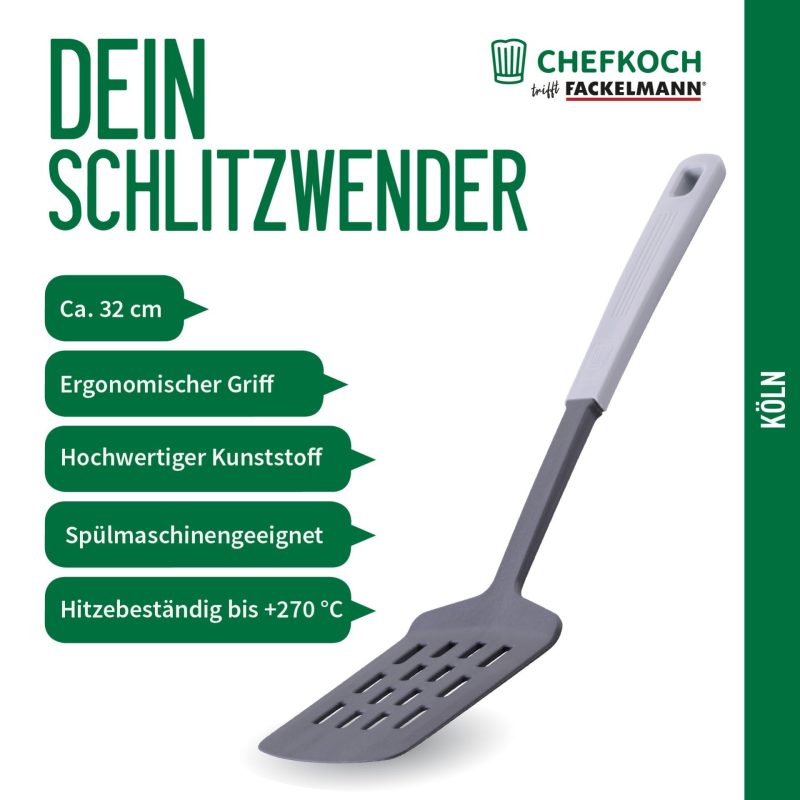 FACKELMANN CHEFKOCH Cologne Slotted Turner, High-Quality Kitchen Tool, Heat-Resistant, Durable, for Coated Cookware, Made of Recycled Material, Made in Germany FACKELMANN