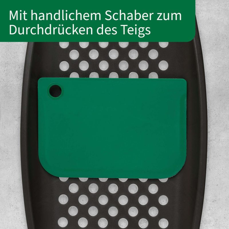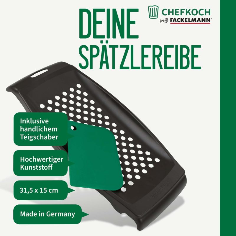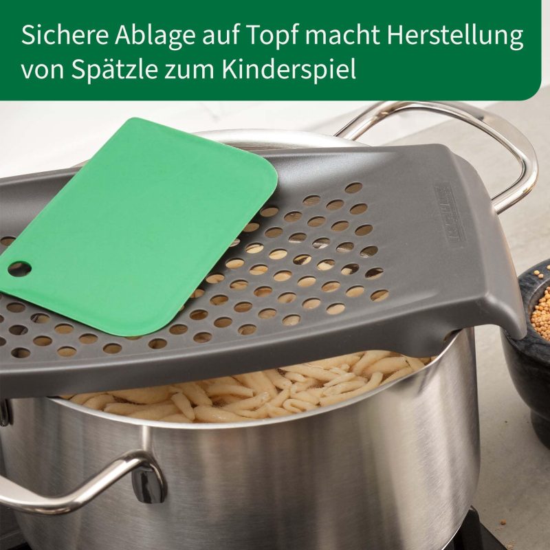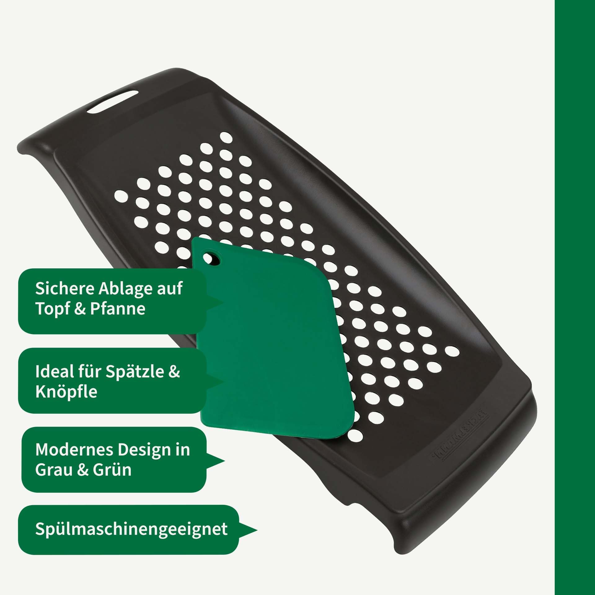 FACKELMANN Chefkoch Spaetzle Grater with Scraper, Two-Piece Spaetzle Slicer in Grey/Green, Ideal for Spaetzle & Knöpfle, Spaetzle Press with Scraper for Easy Pressing FACKELMANN