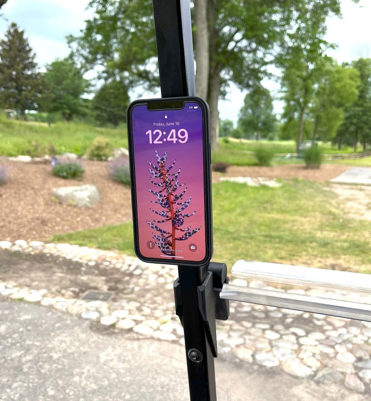 MAGNETIC MOUNT FOR GOLF CARTS: Easily attaches to your golf cart’s roof support struts or any metal surface. Snap it on and mount your phone with one hand — no tools, no straps, no hassle.