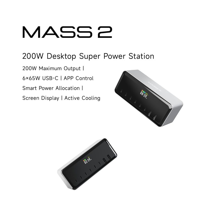 Active Cooling with Built-in Silent Fan:Equipped with a built-in silent vortex fan and an innovative horizontal stacking design, the MASS2 ensures efficient heat dissipation and stable performance during high-speed charging.