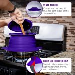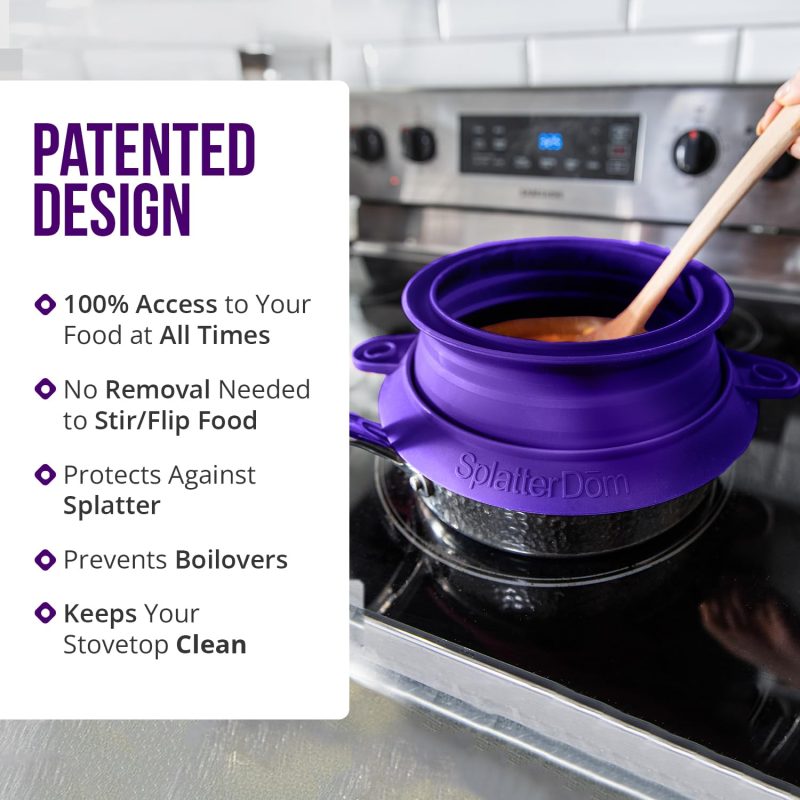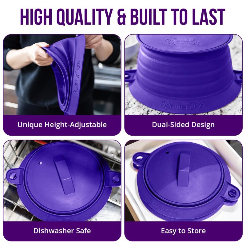 L.I.Q Silicone Splatter Guard – Fits 10 and 12 Inch Pots (25 and 30 Centimeters) – Microwave Safe and Durable SplatterDom – Includes 10” Lid – Food and Oil Splash Guard (Violet, Large) L.ī.Q. Inc.