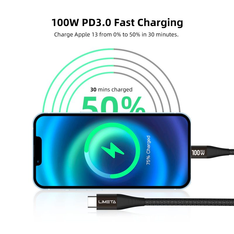 ⚡【Supercharge Your Devices】 Experience lightning-fast charging speeds with our USB-C PD charging cable, delivering up to 100W of power to your USB-C devices. Say goodbye to long waiting times and power up your devices in no time.