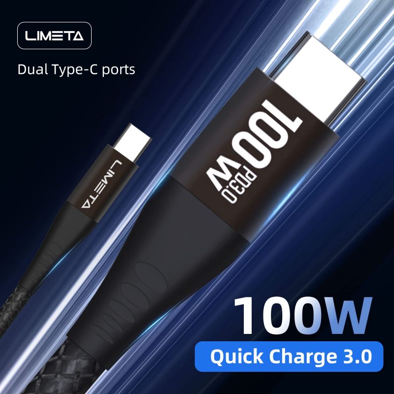 LIMETA 100W USB C to C Cable – Fast Charging & Data Transfer for MacBook, iPad Pro, Galaxy S21, Pixel, Nintendo Switch – Nylon Braided – PD 3.0 & Type C Compatible (2-Pack, 3.9ft+6.6ft) Hihan