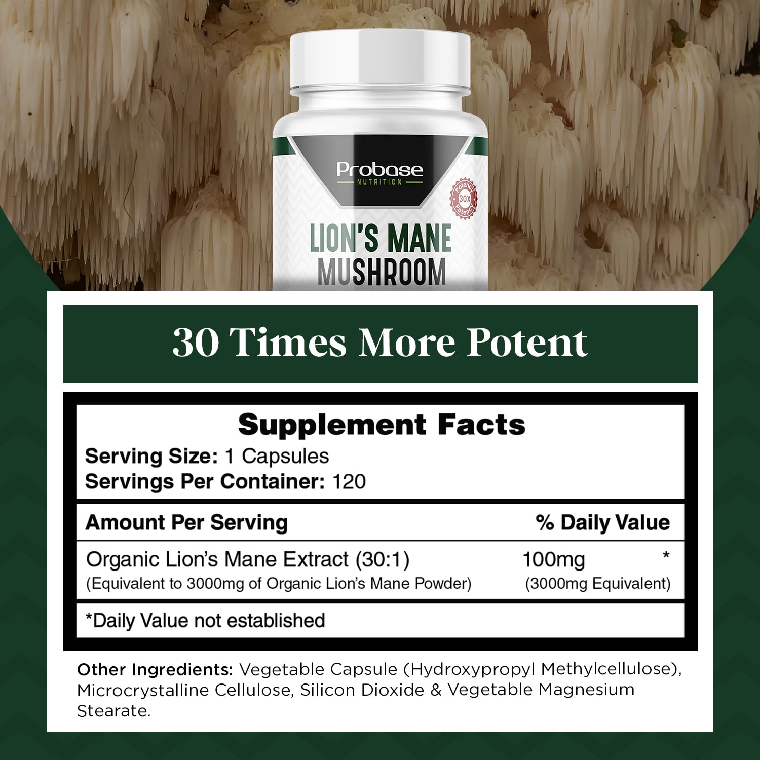 Crafted with Ingredients: Our Lion’s Mane supplement is crafted for support to your well-being and with extracts 30 times more potent than conventional products; Each bottle offers a 4-month supply of lions mane extract supplement capsules