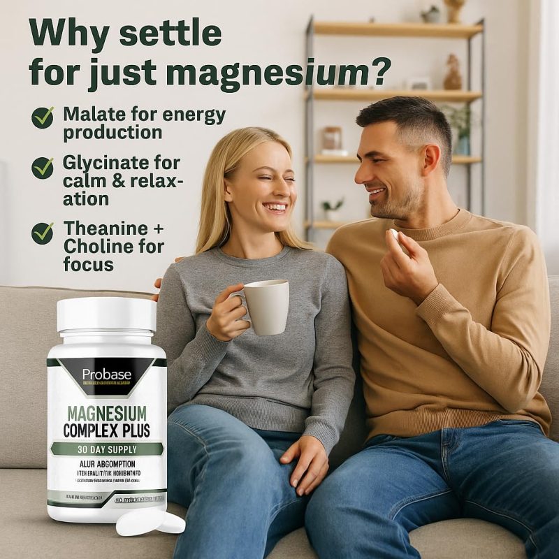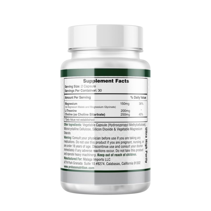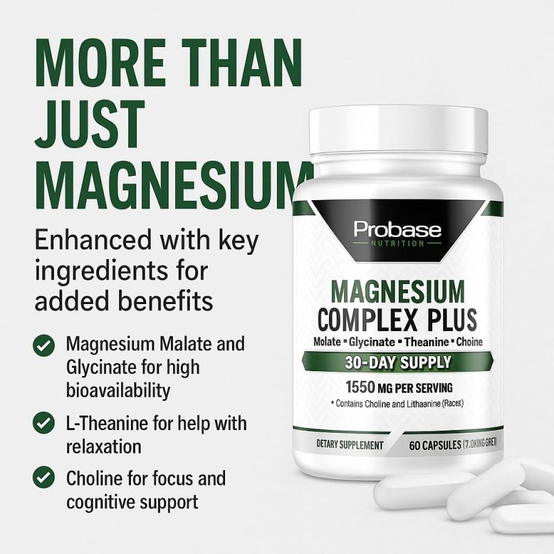 Magnesium Complex Plus with Magnesium Malate, Glycinate, L-Theanine, and Choline High Absorption Formula 60 Capsules 30-Day Supply Probase Group