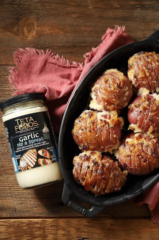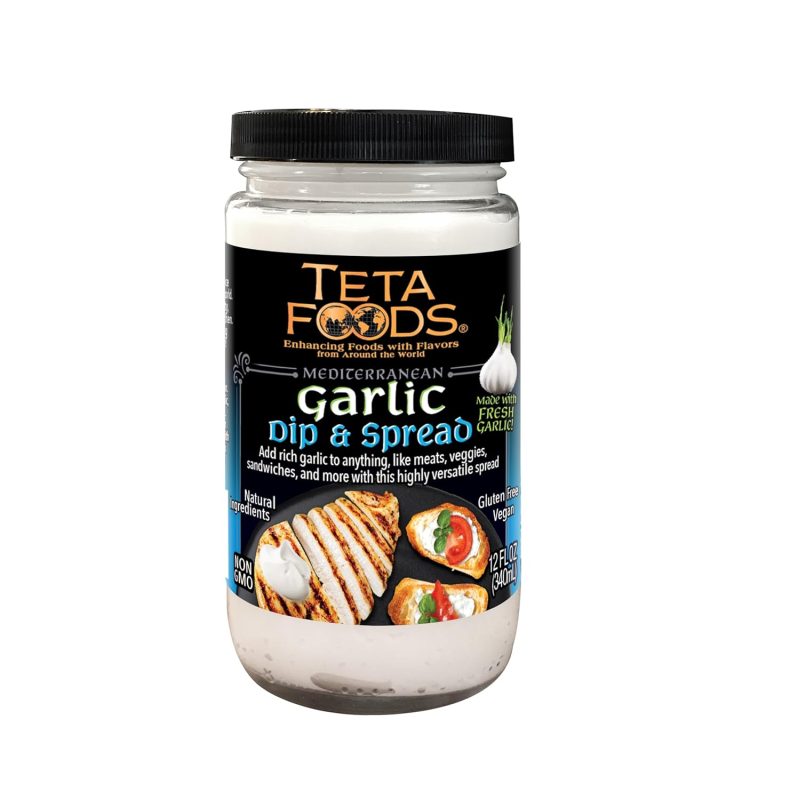 Teta Foods Garlic Dip and Spread is made with finest garlic from California and non-GMO expeller pressed canola oil. It is gluten free and vegan.