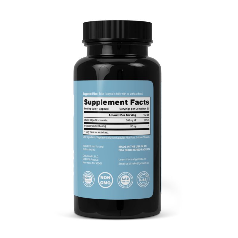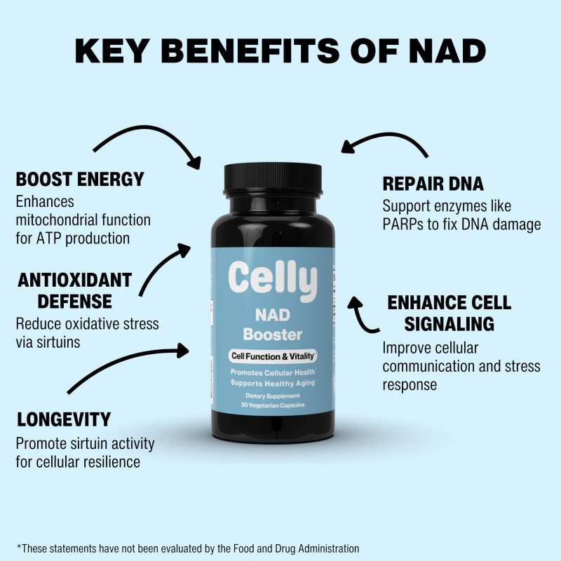 NAD Booster | Longevity Supplement for Healthy Aging with NR (Nicotinamide Riboside) and Nicotinamide | Promotes Cell Function & Vitality | Non-GMO & 3rd Party Tested Celly