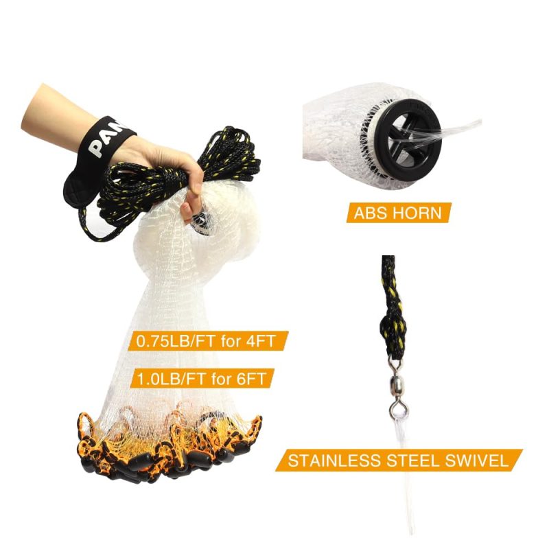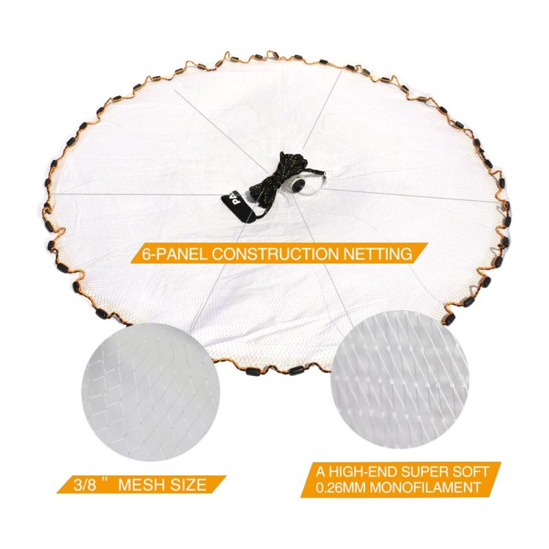 🏆【BEST VALUE AND HIGHEST QUALITY MATERIALS】This cast net comes in different sizes with a versatile mesh of reinforced monofilament nylon and premium protective shell sinkers. No compromise in the materials or design, made to last!