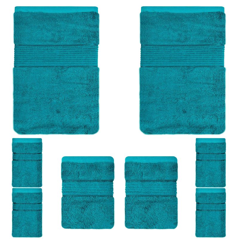 Raymond Clarke 8-Piece Bamboo Cotton 600 GSM Luxury Bath Towels Set for Bathroom, Two Bath Towels, Two Hand Towels & Four Washcloths (Teal) KANGO