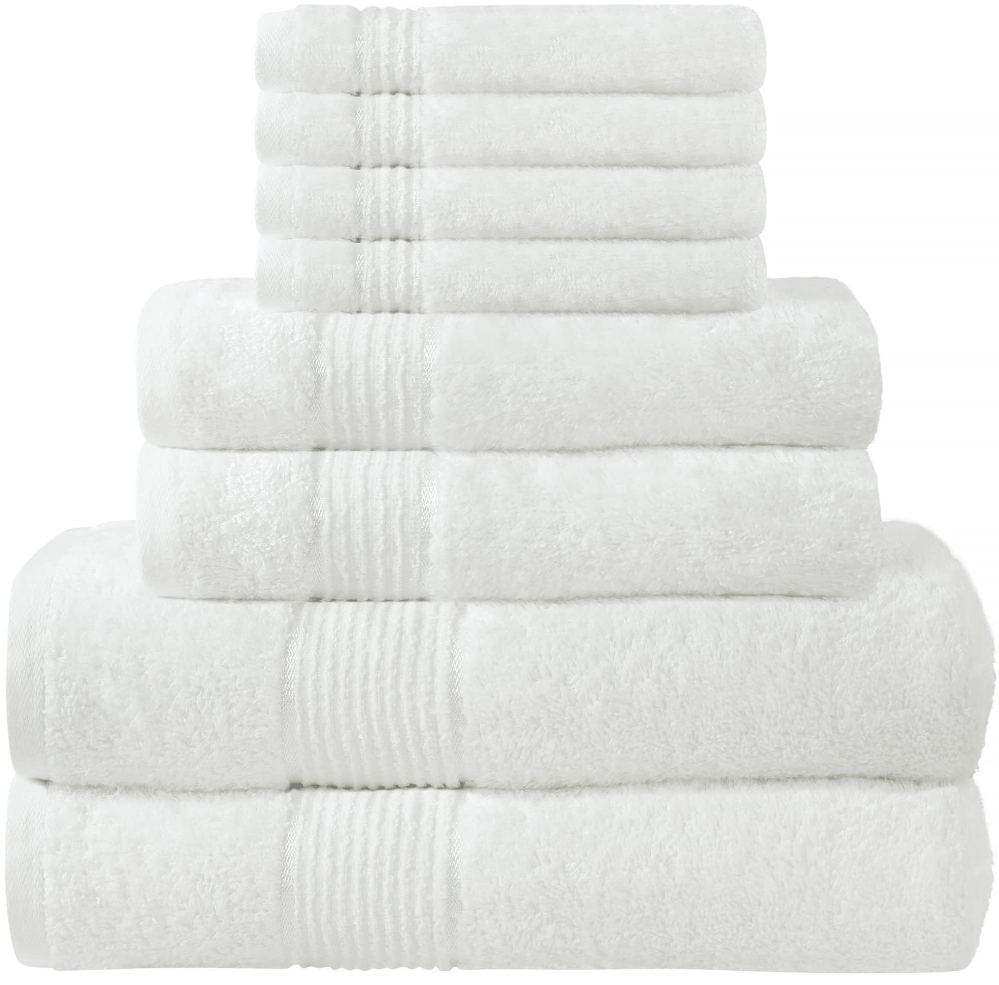 Set includes 2 Bath Towels, 2 Hand Towels and 4 Washcloths. Add a touch of elegance to any home décor, hotel, spa & dorm. These Towels are also used by Colleges, High Schools, Gyms, Hospitals & Clinics.