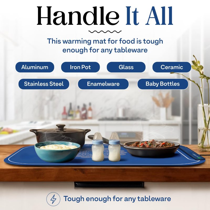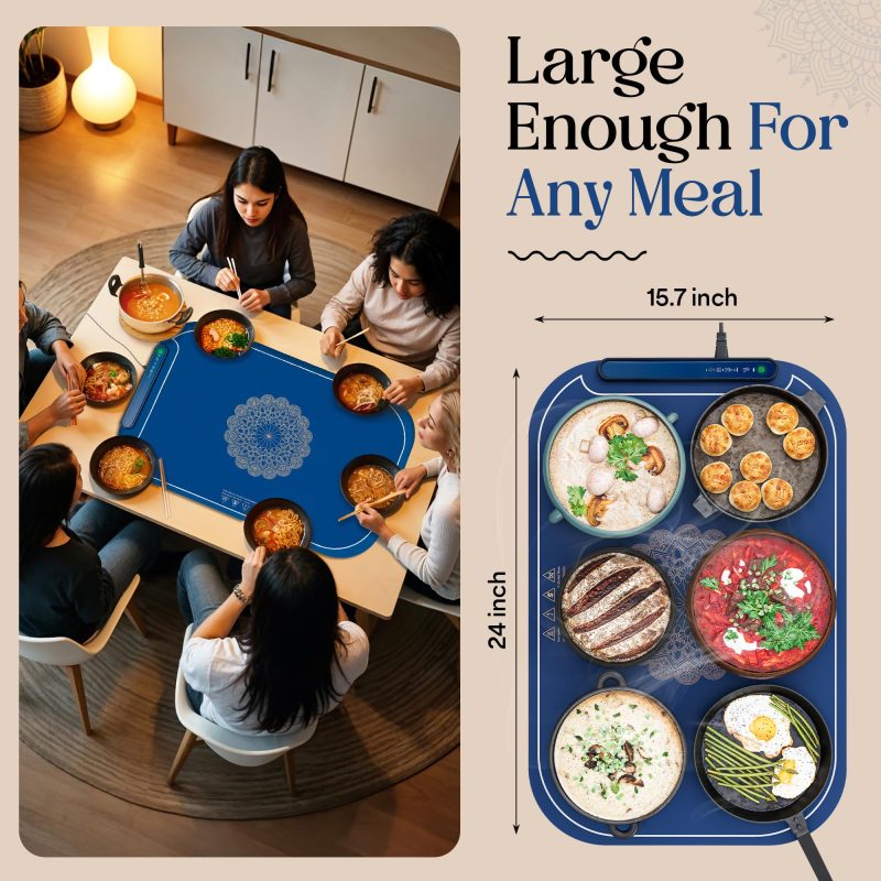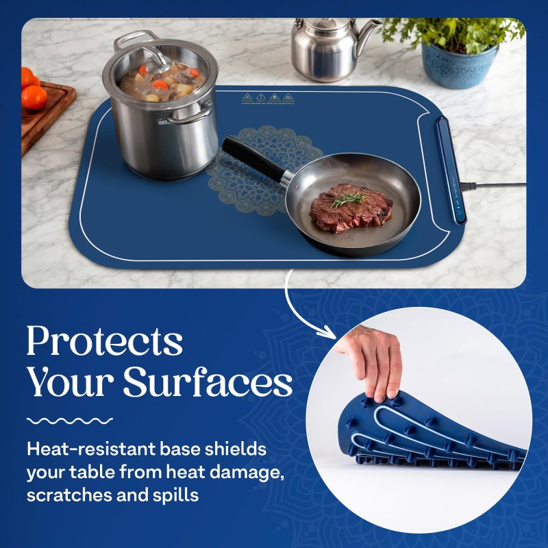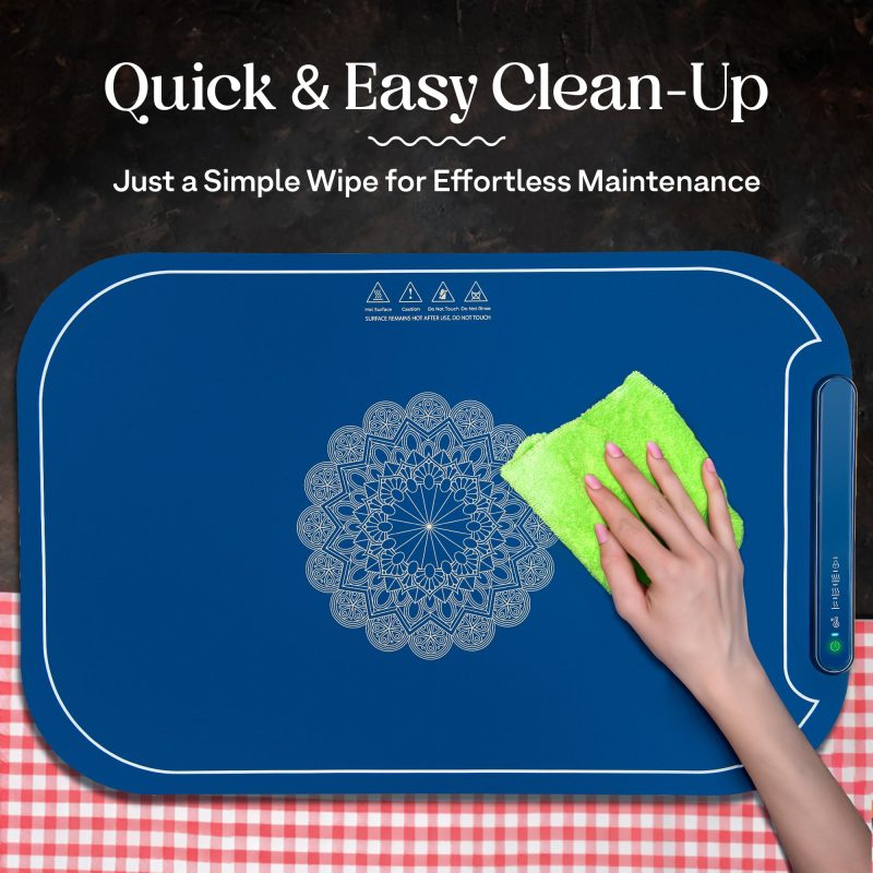 Blue Pantone Meal prep and entertaining just got easier! Imagine hosting a dinner party where you can actually sit and enjoy your time with guests? No more rushing back to the kitchen to reheat food or worrying that your carefully prepared dishes will go cold. With Reezee large silicone warming mat for food, you can do just that. Whether it’s a cozy family meal or larger gatherings, this innovative food warming pad ensures your dishes stay at an optimal temperature with