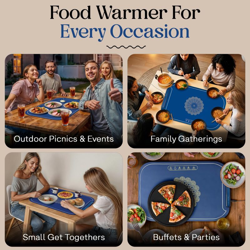 Reezee Silicone Food Warming Mat? Large Electric Food Warmers for Parties Buffet & Family Gatherings, Adjustable Temperature, Heating Pad & Heat Warming Tray to Keep Plates Warm, Child-Lock Design Reezee