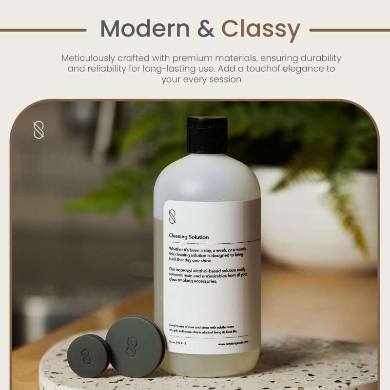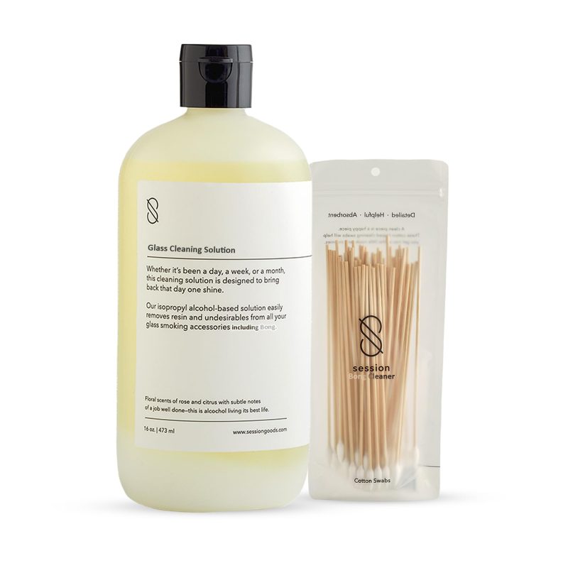 Versatile and effective, our cleaner is perfect for all your gear, from metal and ceramic pipes to glass water pipes and devices. Keep your items consistently fresh and enjoyable with our comprehensive cleaning kit. Save time and effort with our hassle-free cleaning routine. Simply shake, pour, soak, and rinse, and your accessories will be immaculately clean in no time. Elevate your experience with Session Goods Glass Pipe Cleaner today.