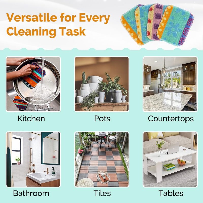 With washable dish scrub pads per set, you always have a fresh scrub pad at your fingertips for clean-ups all around your home.