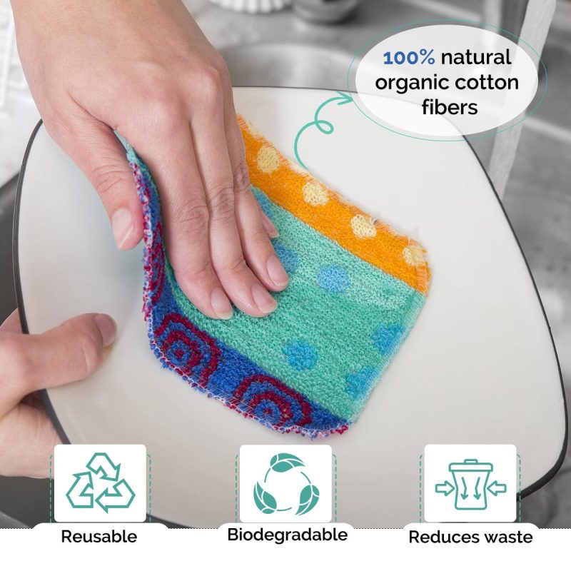 Made with cotton fibers that lift away food remnants from skillets, dishes, stovetops and counters, these amazing alternatives to traditional dish sponges will make your entire home fresh and clean, safely and easily.