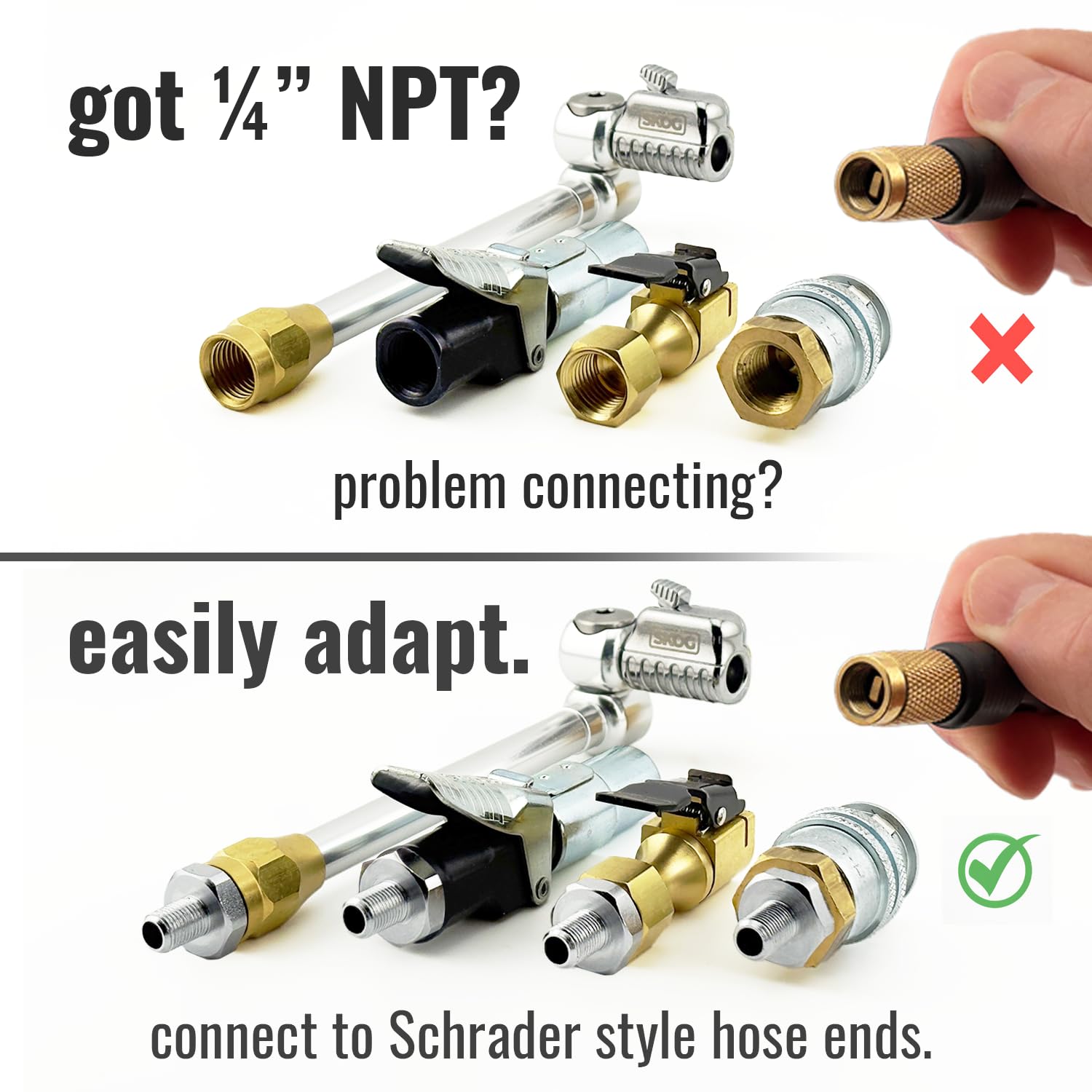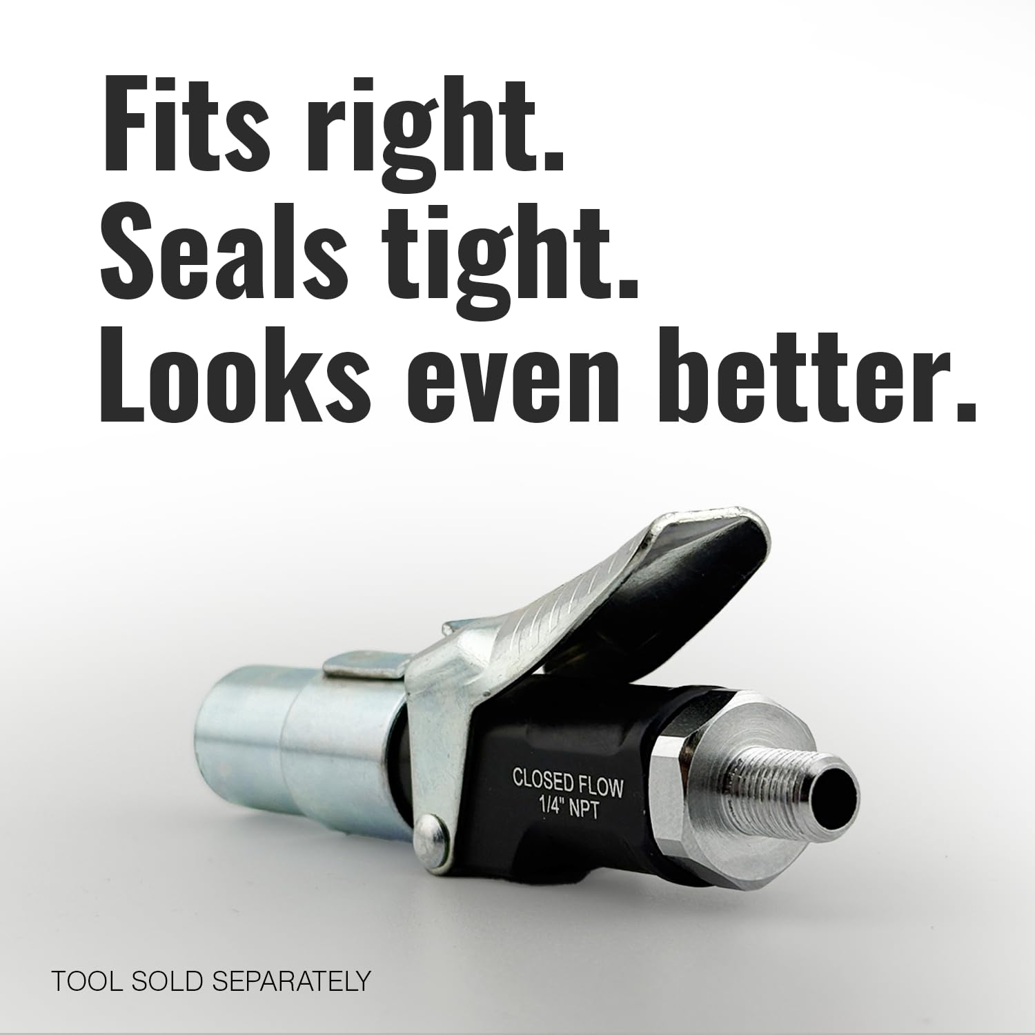 CHROME FINISH THAT MATCHES YOUR TOOLS: Premium polished chrome ¼” NPT(m) adapter fits seamlessly with LockNFlate, Chuck Mates, Milwaukee, Milton, Haltec, and more.