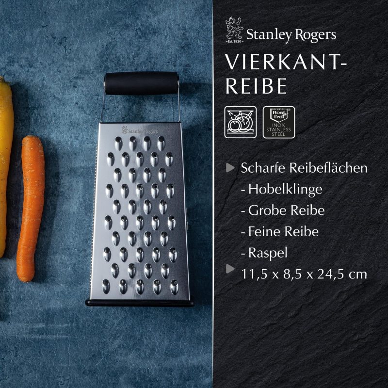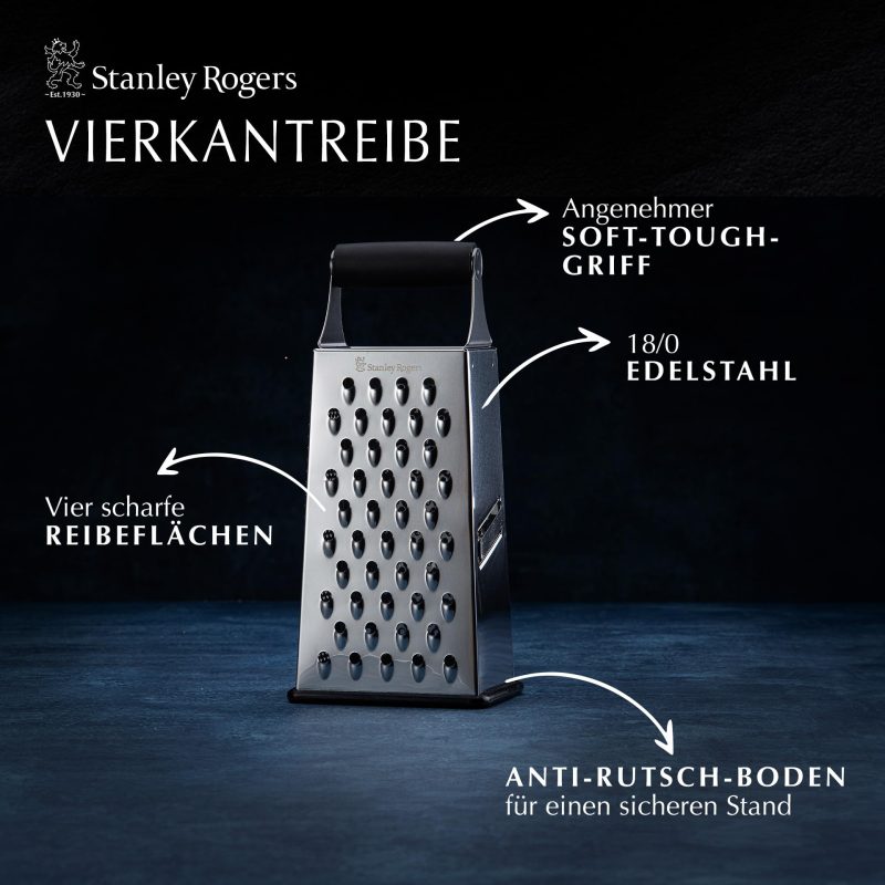 Stanley Rogers Square Grater with Non-Slip Base – High Quality Stainless Steel, Soft-Touch Handle, Dishwasher Safe FACKELMANN