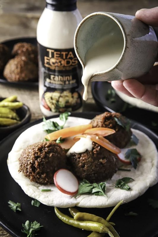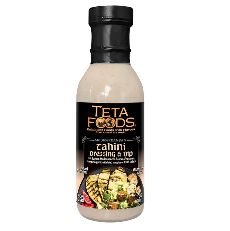 Teta Foods Tahini Dressing is made with sesame paste, lemon juice, vinegar, and garlic. Traditionally, the dressing is called Taratoor, which is used as a topping or dipping sauce on fish, meat Shawarma, falafel, or any fried or green veggies. It can also be used as a salad dressing. In addition, it gives you a quick and easy way to make your own hummus or baba ghanoush.